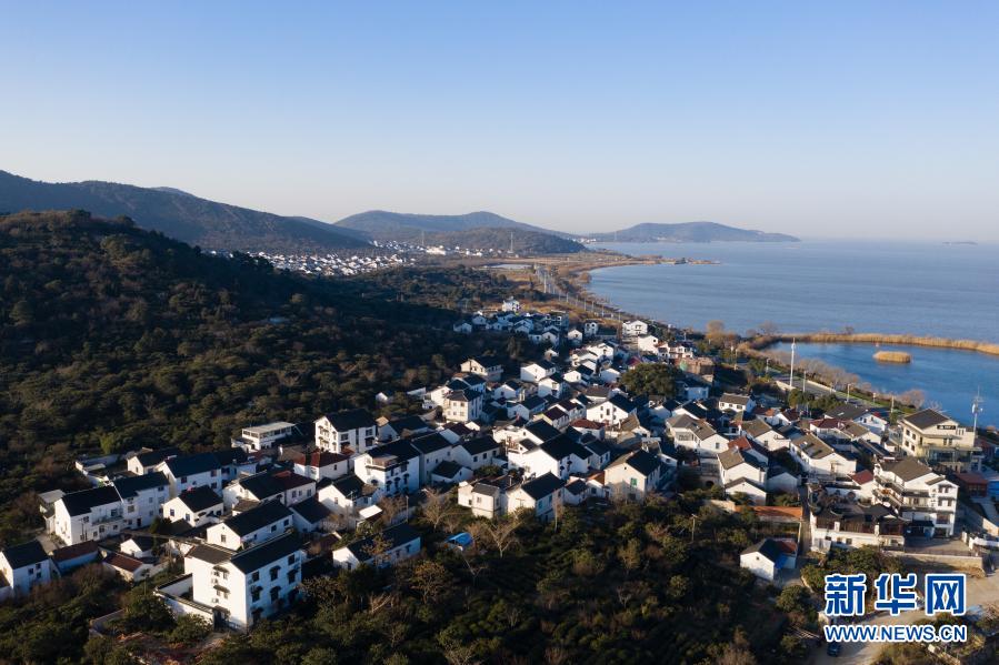 1月13日拍摄的苏州吴中区金庭镇西山岛景色(无人机照片)。