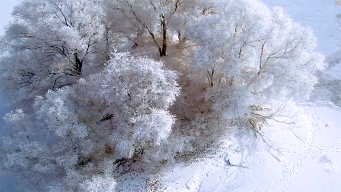 1月27日清晨,沈阳市浑河沿岸出现了雾凇景观。靠近河岸边的植被表面都被裹上了一层“冰衣”,从远处看去每棵树都好似开满了“冰花”。大片的“冰花”晶莹皎洁,闪耀着银白色的光芒。让路过的市民仿佛置身人间仙境。
