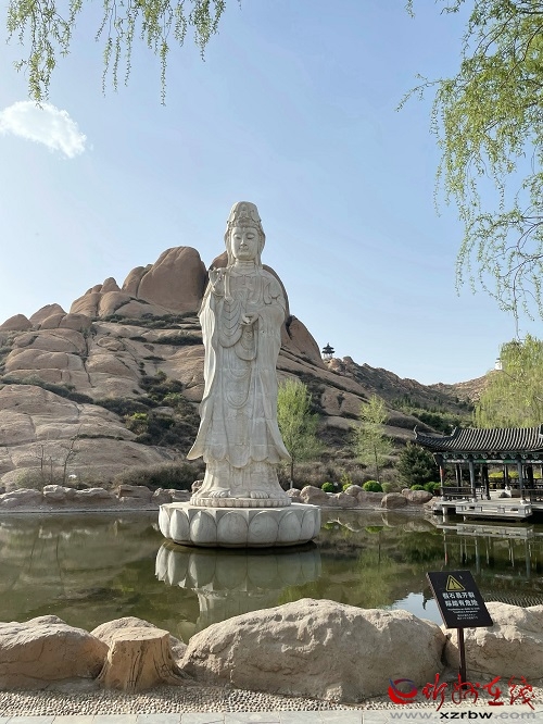 从原平市驱车东行十余里,过滹沦河大桥,即是天涯山风景区。重峦叠峰,山势险峻,奇峰怪石,峭壁耸峙。山尖似箭,直插云霄。天涯山西北山麓,有一妙峰,形似莲花,称莲花山。莲花山东南有一奇石,称石鼓。县志记载:“天涯山有石,形似鼓,不待琢已成器,惟应观而像园,鼓非革生音,从石中发清虚之雅奏,超尘溘似和鸣。”诗人元好问诗赞其曰:“焕起山灵槌石鼓,汉女湘妃出歌舞。”