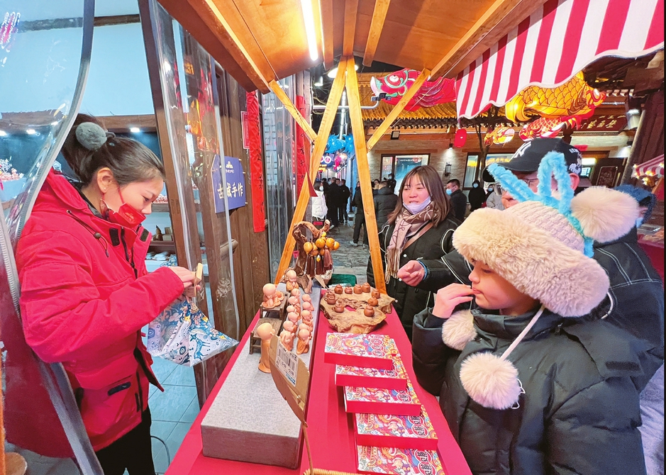 一月二十七日晚,忻州古城,游客正在选购民间手工艺品。春节期间,忻州古城推出了“中国年·在忻州”系列活动,传统习俗与本地特色融合,广大市民及游客体验到了别具特色的年味。本报记者李兆民摄