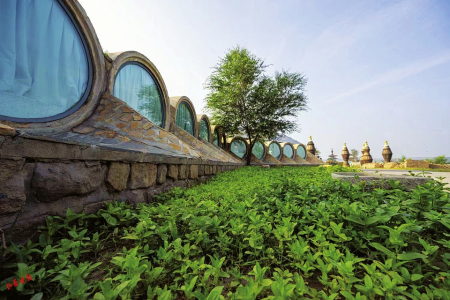 利用碾盘、碑头等旧石刻和矿山废机具打造景观艺术作品数百件;将“煤改电”后废弃的锅炉房,创新改造为云冈图书馆并面向社会开放;用废弃水泥块和各种旧砖块、旧石雕,修建了颇具欧式风格的云冈文保大楼围墙,尤其是由城市废旧地下排水管等材料打造成的一排排蜗牛公寓格外引人注目。蜗牛公寓顶棚上安装的一个个圆形玻璃窗,是用筛煤设备改造成的,上面铺设的太阳能发电板,在自给自足的同时还可向景区供电。蜗牛公寓联排房间均是由废弃管道改造成的,大厅内有会客厅、洗漱池、公厕等设施,地下则利用原有矿山废弃菜窖改造成放映室、酒吧、餐厅等。蜗牛公寓不远处还有用废旧锅炉改造而成的胶囊公寓,在绿草丛中别有风趣。这些建筑极大地丰富了云冈文化内涵,开创了全国首家世界遗产地利用固体废物营造景区景观的新路,对大同市乃至全国景区生态环境保护有着深刻的教育和借鉴意义。
