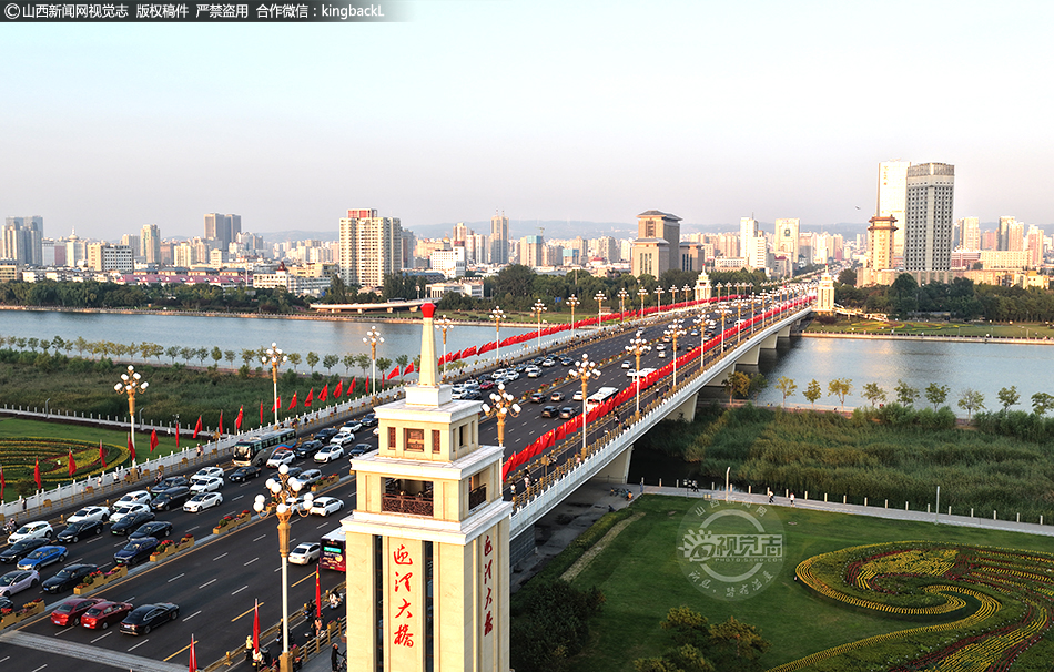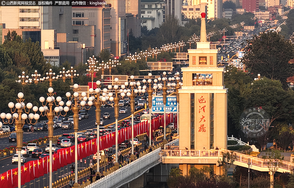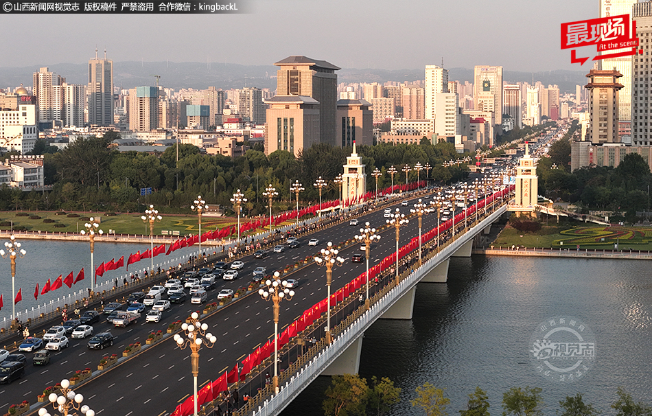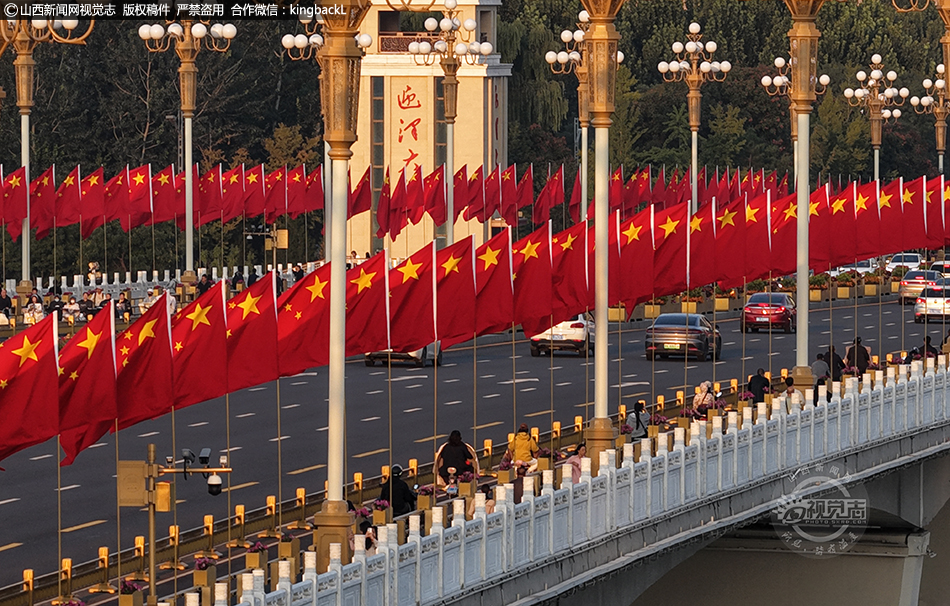 山西太原:迎泽桥 “中国红”引打卡 国庆氛围拉满