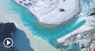 新疆昭苏,阿合牙孜河和特克斯河清浊相汇,泾渭分明。
