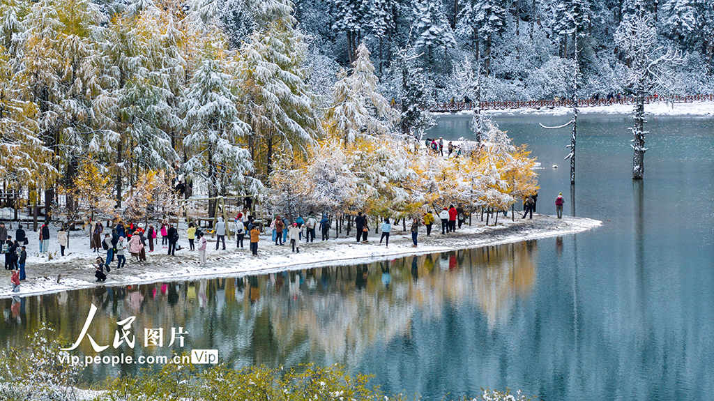 2025年10月26日,位于四川省阿坝藏族羌族自治州理县的毕棚沟风景区秋意正浓,景色如画,吸引游客前来。方永涛摄(人民图片网)