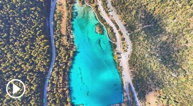 初冬的丽江蓝月谷 美成流动山水画
