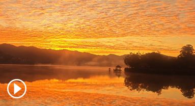 云南普洱:日光透薄雾 霞彩铺天际