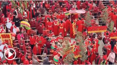 千担红盘列成长阵,锣鼓声震彻乡野,这就是莆田市涵江区新坡村最具代表性的元宵民俗活动之一——千人担盘闹元宵。活动中,全村按生肖和年龄轮值“福首”,由其牵头组织,将亲朋好友家的担盘集中巡游祈福。热闹的仪式不仅吸引八方宾客慕名而来,也让不少侨胞跨越山海返乡团聚。正月十一,人民日报记者走进新坡村,探访这场承载乡情与祝福的元宵盛会。