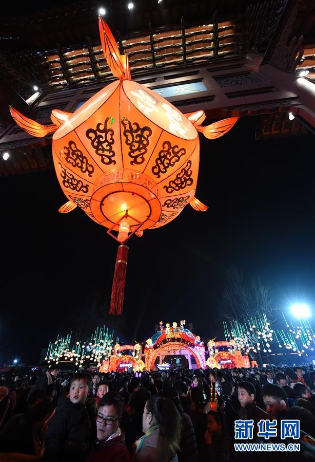 2月22日晚,游人在夫子庙景区观灯游玩。当晚,在江苏南京夫子庙秦淮风光带举办的秦淮灯会彩灯齐放,人们前来观灯闹元宵。 新华社记者孙参摄