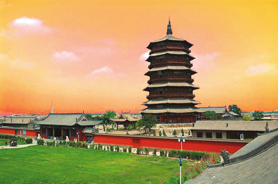 山西应县木塔即佛宫寺释迦塔,也称应县释迦塔,是最古老的一座纯木结构楼阁式高层建筑,建筑奇巧,规模宏丽,其中包含了无数的数字妙趣。