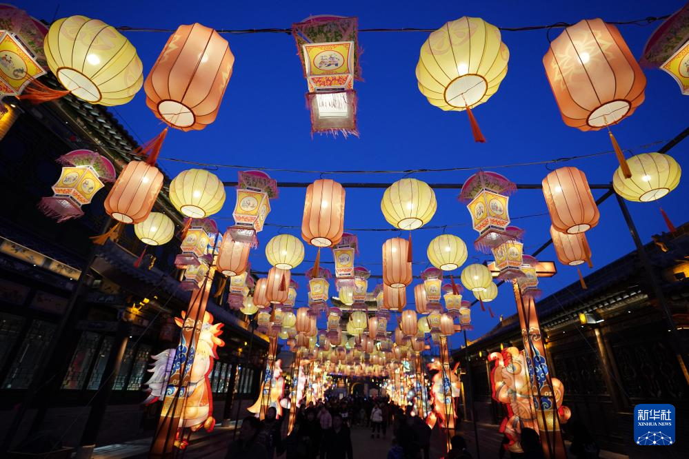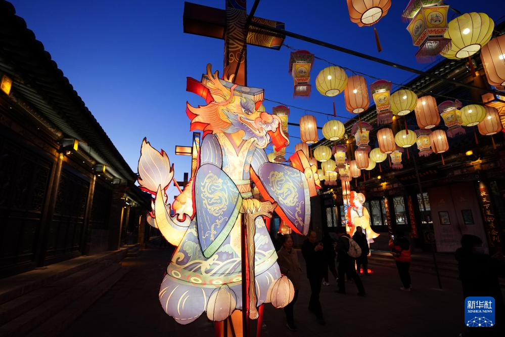 春节期间,在山西省太原市晋源区太原古县城举办的“锦绣太原中国年·凤舞龙城花灯会”上,各类花灯流光溢彩、璀璨夺目,吸引众多游人前来观赏。
