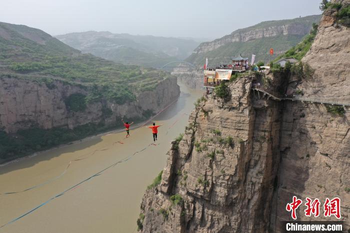 高空扁带国际挑战赛在黄河大梯子崖景区举行。 河津市融媒体中心供图