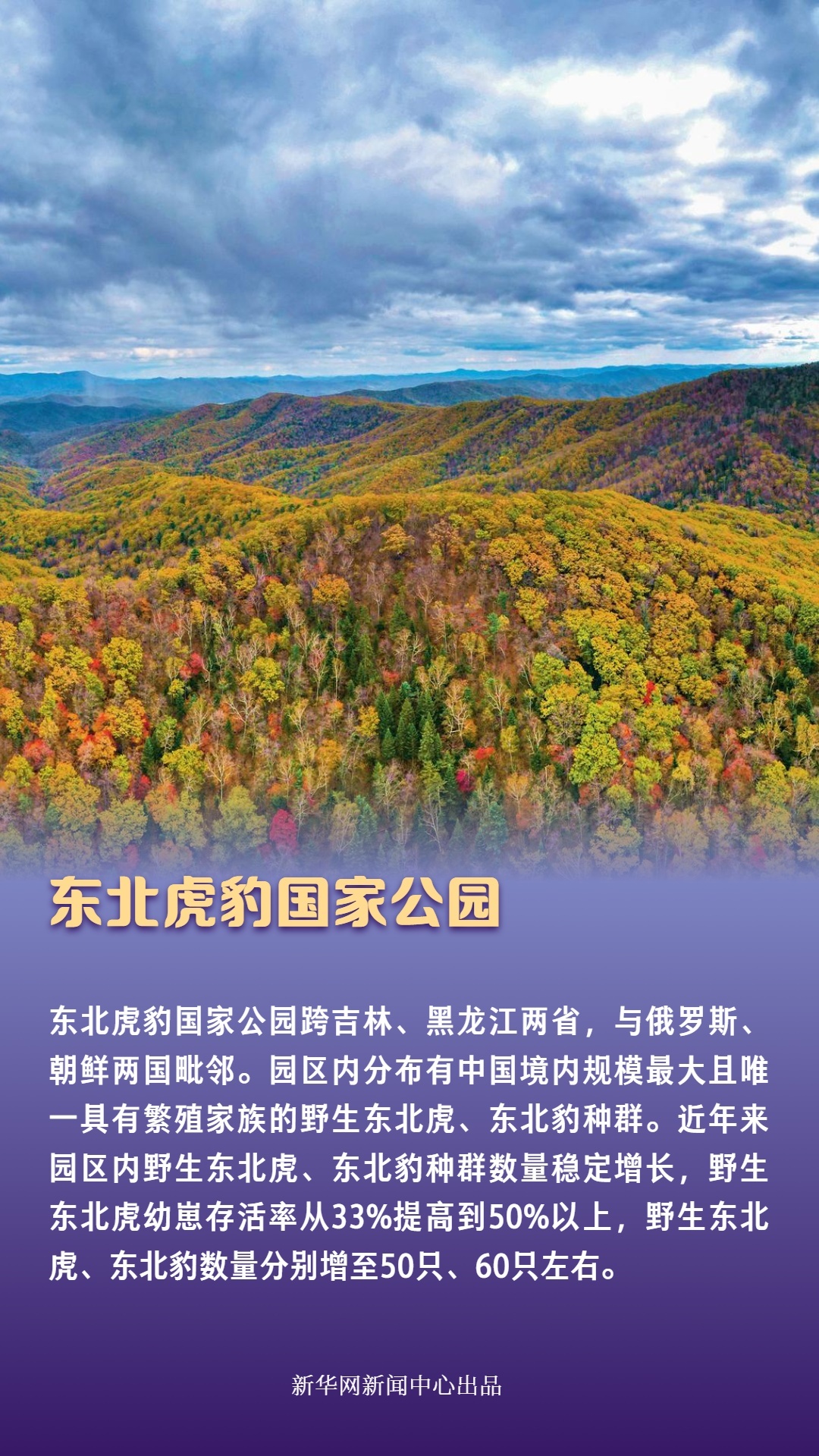 2021年10月12日,中国正式设立三江源、大熊猫、东北虎豹、海南热带雨林、武夷山等第一批国家公园,保护面积达23万平方公里,涵盖近30%的陆域国家重点保护野生动植物种类。