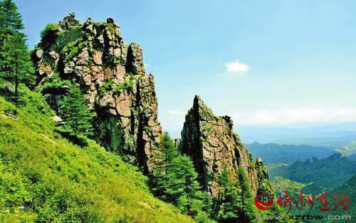 走到半山腰的一个悬崖处,一块巨石突兀地横在一条深达数百米的山沟上方。站在巨石上,无论抬头还是四处远望,陡峭险峻的高峰和沉静雄伟的山脉,蜿蜒曲折,一直绵延数百里,那恢弘的气势,蔚为壮观,动人心魄,令游客叹为观止。近观一座座峰峦,或拔地而起,或峰峦叠嶂,或奇峰罗列,或怪石嶙峋,真是千奇百态,光怪陆离;远眺一列列山脉,或千峰万仞,或峭壁悬挂,鬼斧神工,万般神奇,犹如进入梦幻仙境一般。