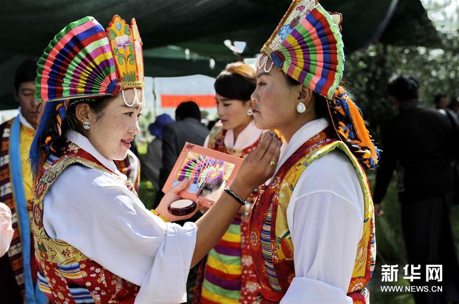8月2日,西藏拉萨市堆龙德庆区首届藏戏文化艺术展暨藏戏大赛在乃琼镇加热村举办,来自全区各乡镇的8个藏戏艺术团同台献艺,为众乡亲表演了精彩的节目。新华社记者 张汝锋 摄