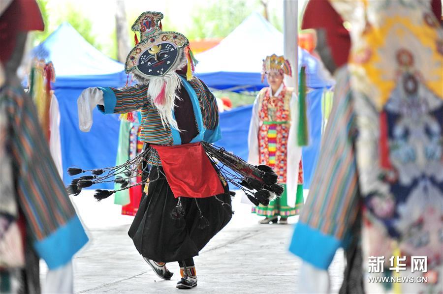 8月2日,西藏拉萨市堆龙德庆区首届藏戏文化艺术展暨藏戏大赛在乃琼镇加热村举办,来自全区各乡镇的8个藏戏艺术团同台献艺,为众乡亲表演了精彩的节目。新华社记者 张汝锋 摄