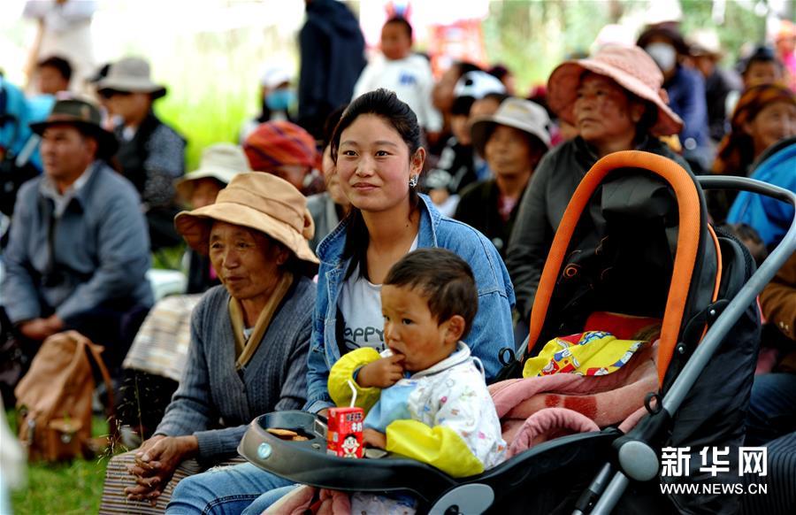 8月2日,西藏拉萨市堆龙德庆区首届藏戏文化艺术展暨藏戏大赛在乃琼镇加热村举办,来自全区各乡镇的8个藏戏艺术团同台献艺,为众乡亲表演了精彩的节目。新华社记者 张汝锋 摄