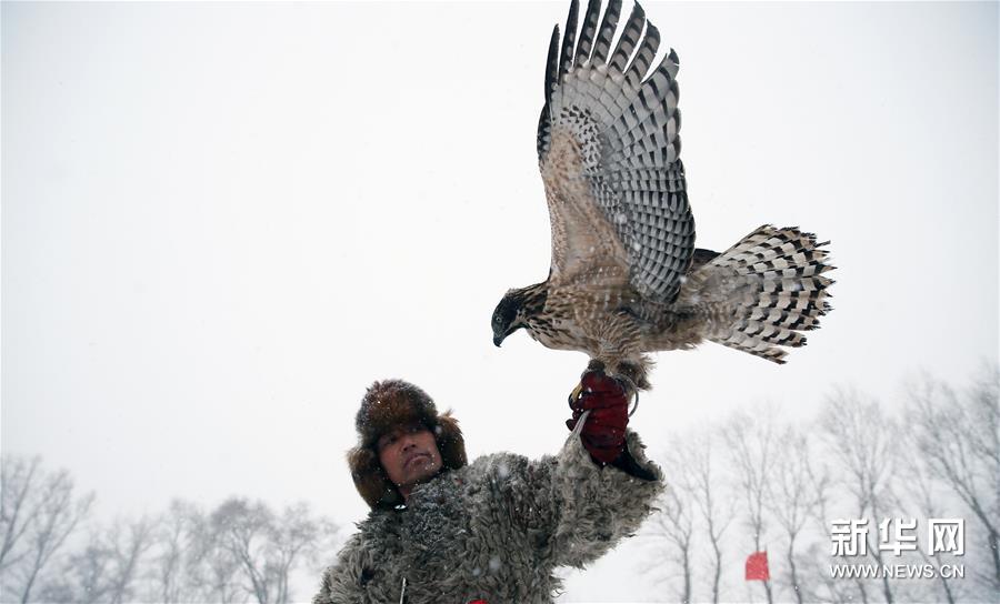 近日,第22届中国·吉林国际雾凇冰雪节召开,各地游客来到吉林市体验冰雪文化和东北民俗,近距离接触神秘的驯鹰人。 新华社记者 才扬 摄