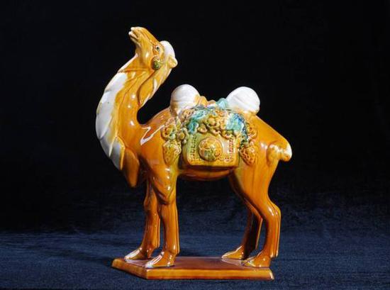 唐三彩的陶塑以人物俑、马俑和骆驼俑的塑造最为有名。特别是三彩马,头小颈长,膘肥体壮,眼睛炯炯有神,富于艺术的概括力。其中以白色三彩和黑色三彩最为名贵。比如早在1989年12月12日,国际苏富比(微博)拍卖行拍卖的一件唐三彩黑马在英国伦敦以4955万英镑成交。以黄、绿、褐为主的马则价值略低,又如1991年6月10日,佳士得拍卖行有一件黄、褐彩为主的“三花饰马”仅拍得6.05万英镑。