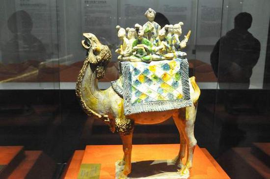 “唐三彩”是盛行于唐代的陶器,以黄、褐、绿为基本釉色。据乾县工艺美术厂原厂长张锦田介绍,不一定每件唐三彩都三色俱全,但可利用三色交叉混合的上釉技术来制造出美丽的花朵,以及先在坯体上刻花成暗色图案,变化无穷,彩色斑斓。当时制作场地主要在长安和洛阳两地,在长安的称西窑,在洛阳的则称东窑。唐代盛行厚葬,不仅是大官贵族,百姓也如此,已形成一股风气。因此,现在出土的“唐三彩”,文物价值高,倍受藏家珍爱。