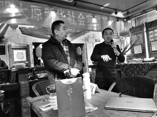 本文作者(右一)与刘勇(左一)在太原书城新书推介会上