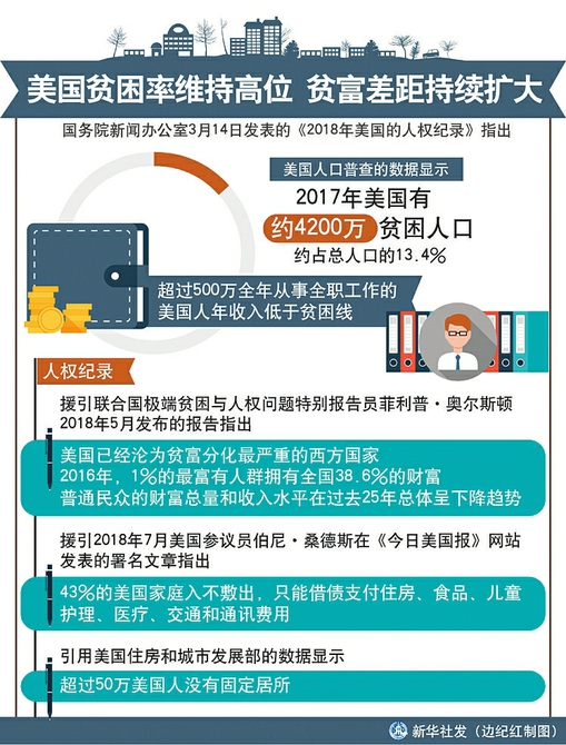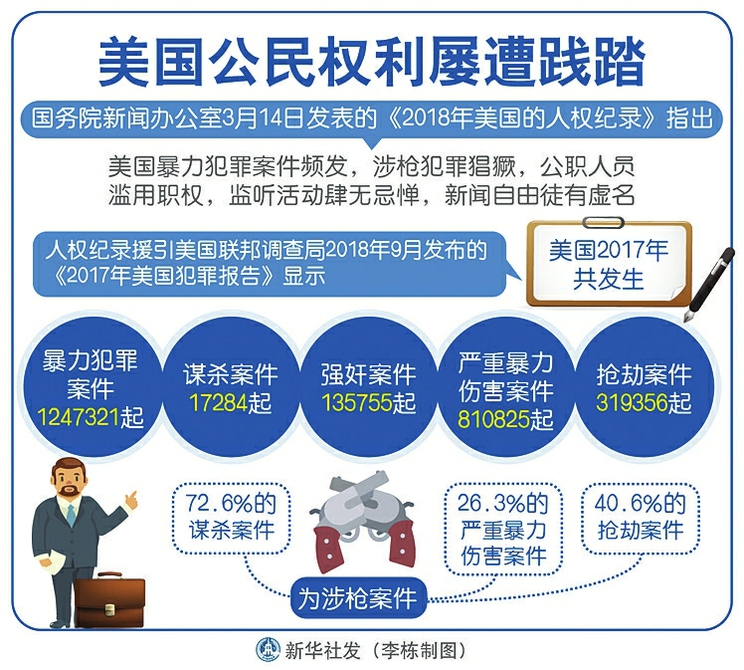 国务院新闻办公室14日发表《2018年美国的人权纪录》《2018年美国侵犯人权事记》,对美国侵犯人权的状况进行揭露。