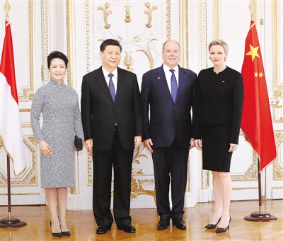 习近平指出,很高兴应亲王殿下邀请对摩纳哥公国进行国事访问。这是中国国家主席首次访问摩纳哥。我们两国相似的民族性格和共同的精神追求,使得我们相知相亲。中摩建交20多年来,双方始终真诚友好、平等相待。当前,中摩双边关系稳步发展,务实合作与时俱进,尤其是在环保、电信、移动支付等新领域走在中欧合作前列。中摩关系已成为不同大小、不同历史文化、不同社会制度国家友好交往的典范。