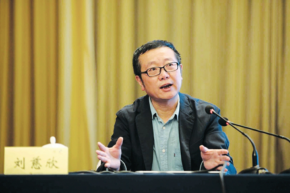 图为刘慈欣在第十三届“全民阅读论坛”上回答读者的提问。 吴静波摄