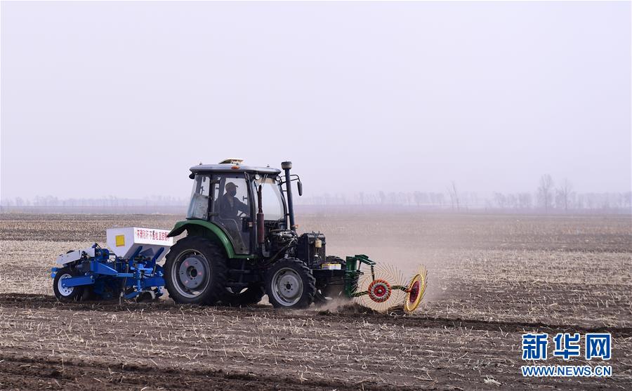 在榆树市环城乡,农民高春雨在检修农机(4月19日摄)。新华社记者 张楠 摄