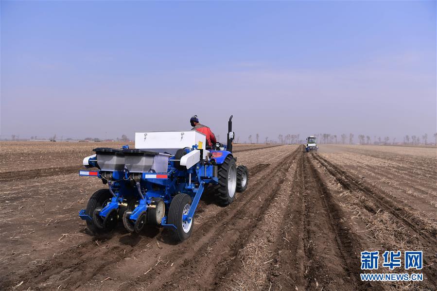 4月23日,吉林省榆树市弓棚镇农民使用免耕播种机播种玉米。新华社记者 林宏 摄
