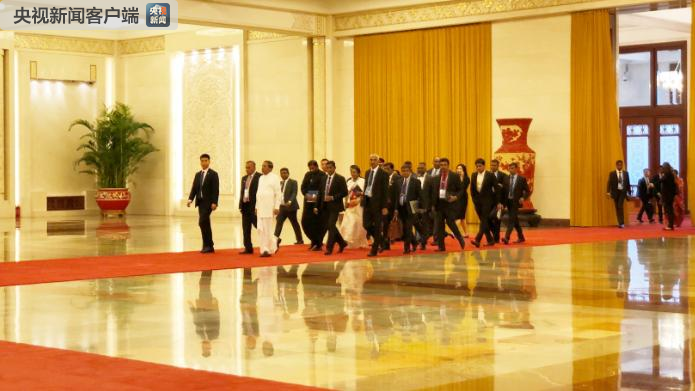 △斯里兰卡总统西里塞纳率团抵达人民大会堂与习近平会面。(央视记者许永松拍摄)