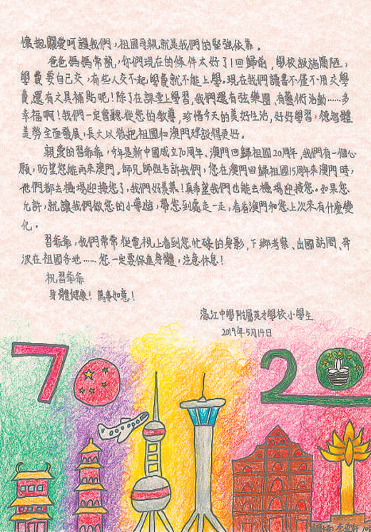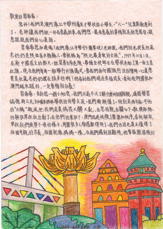 澳门濠江中学附属英才学校小学生的来信