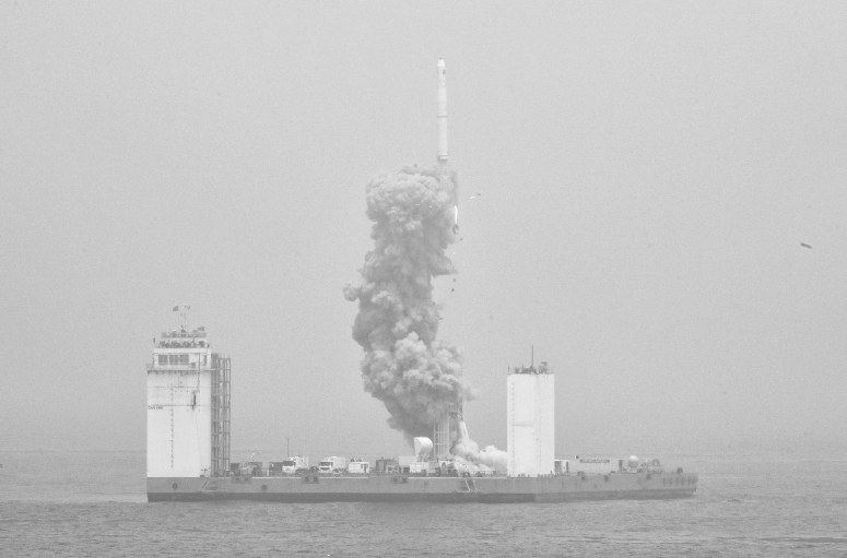 2019年6月5日12时6分,我国在黄海海域用长征十一号海射运载火箭,将技术试验卫星捕风一号A、B星及五颗商业卫星顺利送入预定轨道,试验取得成功,这是我国首次在海上实施运载火箭发射技术试验。