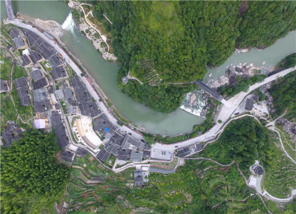 从空中俯瞰下党村(8月8日无人机拍摄)。新华社记者 林善传 摄