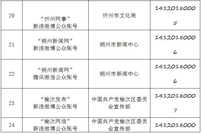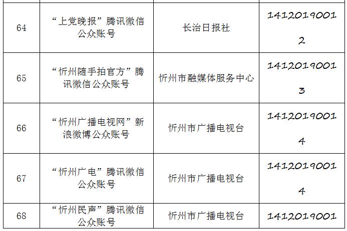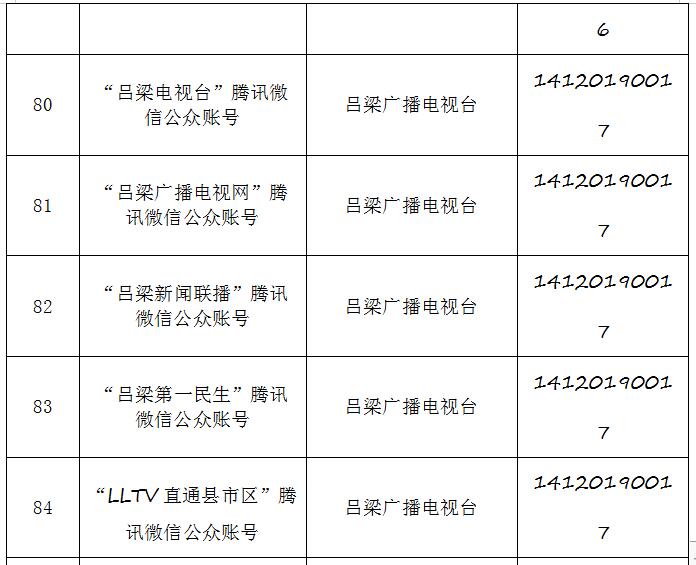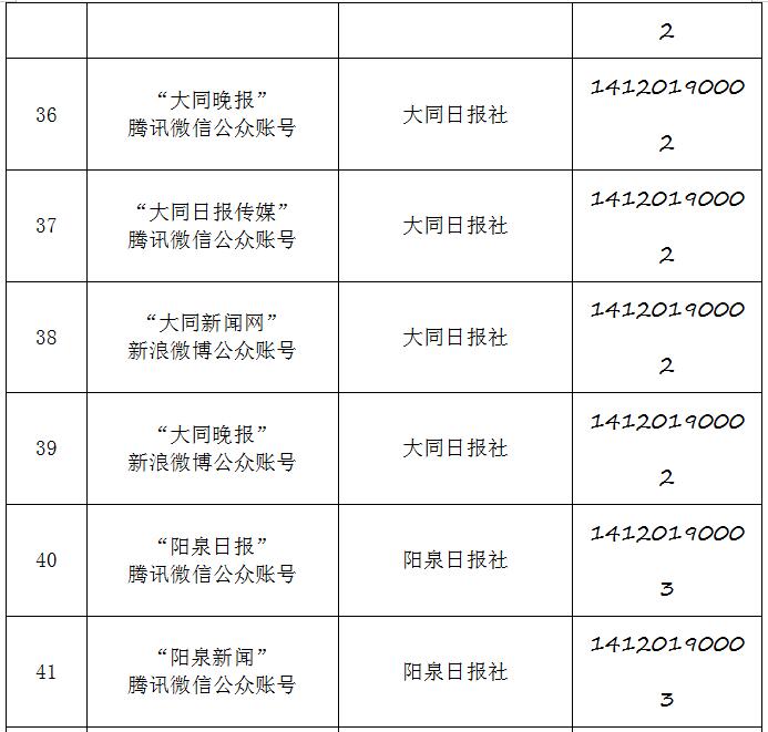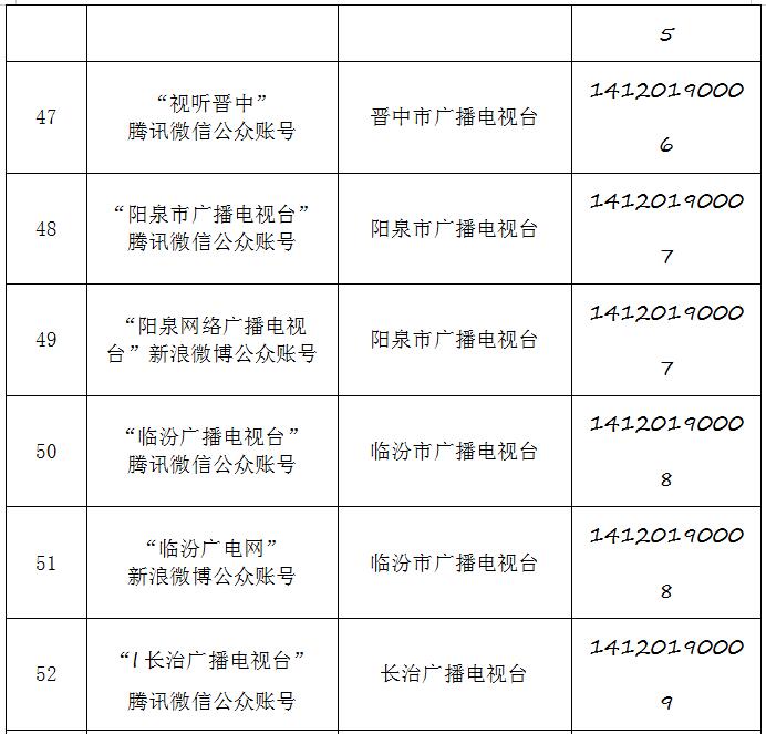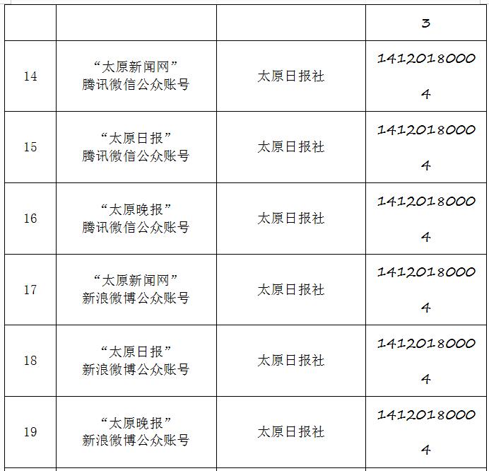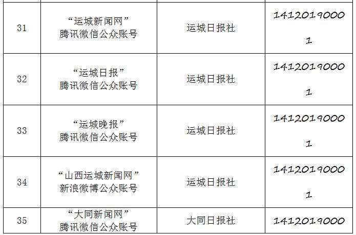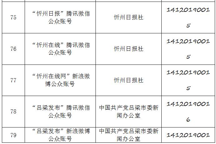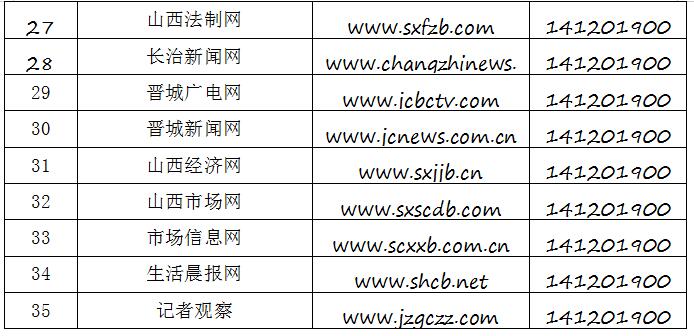 截至2019年9月20日,经山西省互联网信息办公室许可的属地互联网新闻信息服务单位共计34家,具体服务形式包括:互联网站35个,应用程序23个,论坛1个,公众账号130,共计189个服务项。