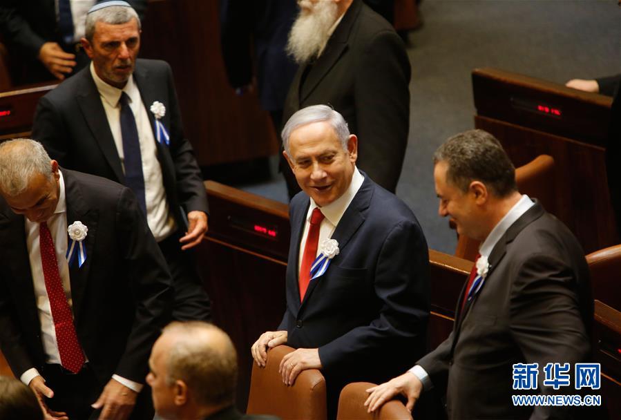 10月3日,以色列利库德集团领导人、现任总理内塔尼亚胡(中)出席在耶路撒冷举行的第22届议会议员宣誓就职典礼。 以色列第22届议会议员10月3日在耶路撒冷的议会大厦宣誓就职。 9月17日,以色列举行第22届议会选举,本尼·甘茨领导的中间党派蓝白党获得33个席位,现任总理内塔尼亚胡领导的利库德集团获得32个席位。 新华社发(吉尔·科恩·马根 摄)