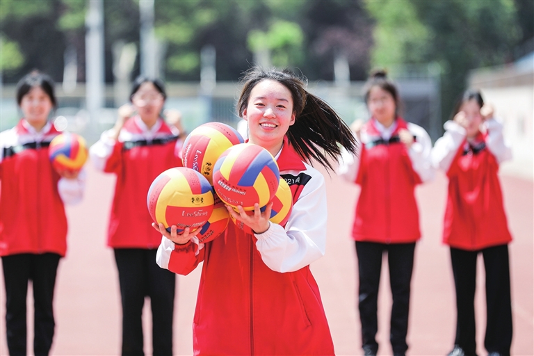 焦作温县一中高三学生在操场上做减压游戏(大河网资料图)