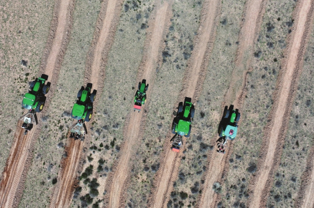 图为6月15日,牵引播种机在内蒙古鄂尔多斯市杭锦旗防沙治沙项目区种柠条。