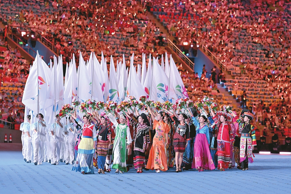 11月22日,中华人民共和国第十二届少数民族传统体育运动会会旗方阵在开幕式上入场。当日,中华人民共和国第十二届少数民族传统体育运动会开幕式在海南省三亚市举行。据新华社