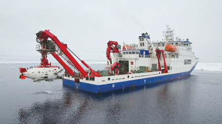 中国大洋92航次第一航段由“深海一号”携“蛟龙”号于2025年7月15日从青岛起航,9月8日返回青岛。在“雪龙2”号极地科考破冰船破冰保障下,本航段在北极海域进行了“蛟龙”号载人深潜、ROV调查和CTD(温盐深剖面仪)采水等作业。