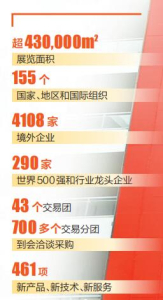 展览面积超过43万平方米,155个国家、地区和国际组织参与,4108家境外企业参展,290家世界500强和行业龙头企业参展……在八方来客眼中,进博会越长越“高”、越来越“壮”。