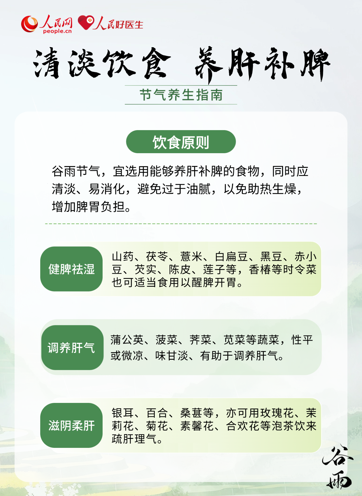 谷雨是春夏之交的关键转折期,气温回升快、雨水增多,湿热交织成为气候主旋律。此时养生的核心在于健脾祛湿与柔肝防风,既要防范外湿入侵关节皮肤,也要疏解内湿困脾上火。