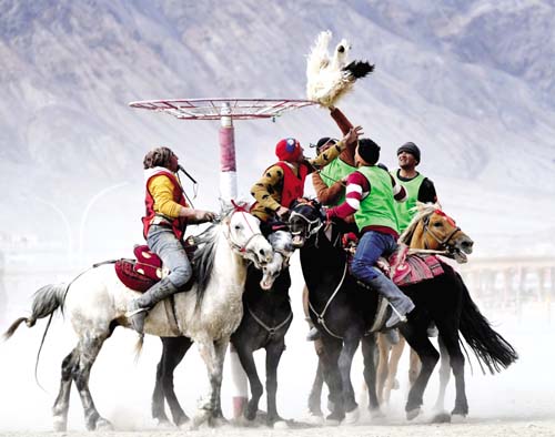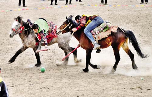 图三为村民参加塔吉克马球比赛。