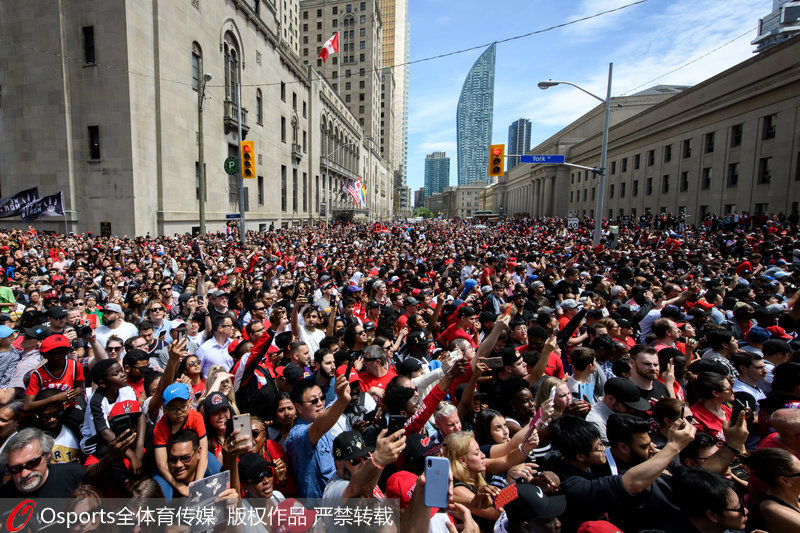 人民网北京6月18日电(杨磊) 北京时间6月17日,NBA新科总冠军多伦多猛龙队举行了夺冠庆典,大约有200万球迷参加了这次庆典。