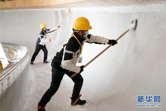 3月10日,我国首条雪车雪橇赛道——北京冬奥会延庆赛区国家雪车雪橇中心赛道完成制冰工作。北京冬奥会期间,国家雪车雪橇中心将承担雪车、钢架雪车、雪橇三个项目的全部比赛。 新华社发