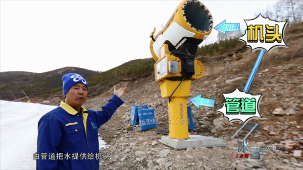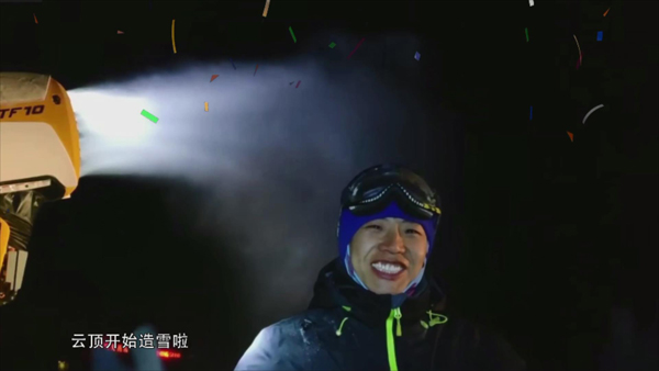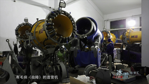 (我们)在零下三十多度的情况下,也要坚持造雪,造雪机出现困难(故障)的时候,我们也得去及时抢修,不戴手套,都要坚持把它(造雪机)修好。