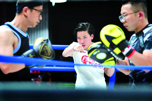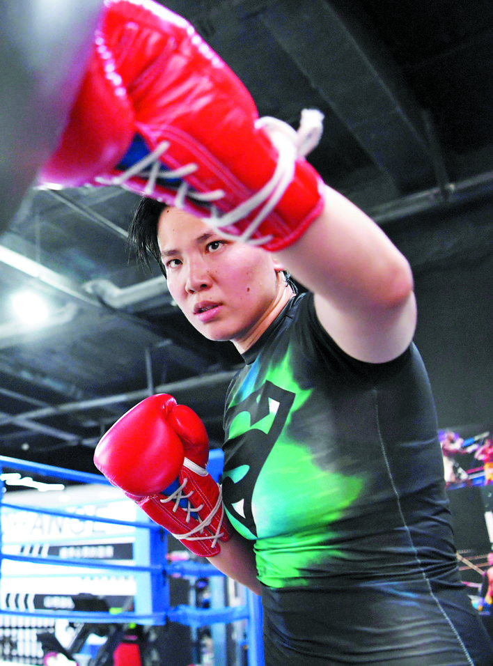 在薛金玉的带动下,搏击成为她所在健身房最受欢迎的运动之一,越来越多的“硬核”年轻人走上拳台,享受搏击运动带来的快乐。“每天从中午到晚上课程安排得非常满,人多的时候拳台都站不下。”薛金玉笑着说。