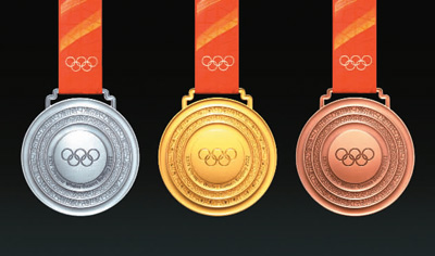 在奖牌正面,设计团队纹刻了祥云纹和冰雪纹。“祥云纹是对2008年北京奥运会的文化传承,传达吉祥寓意;冰雪纹则体现冬奥会特点。”杭海说。