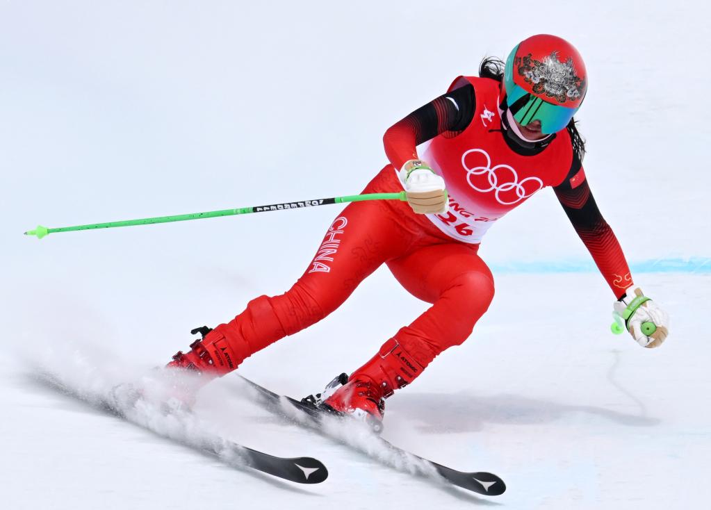 2月15日,中国选手孔凡影在北京冬奥会高山滑雪女子滑降项目比赛中。新华社记者张晨霖摄