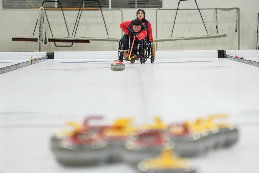 2018年平昌冬奥会,中国轮椅冰壶队拿到中国冬残奥会历史首金。为备战北京冬残奥会,队伍近些年来一直加紧训练。“平昌夺冠已成历史,从零开始奔向北京。”在北京顺义的国家残疾人冰上运动比赛训练馆冰壶馆中,这条标语高悬,显得格外醒目。