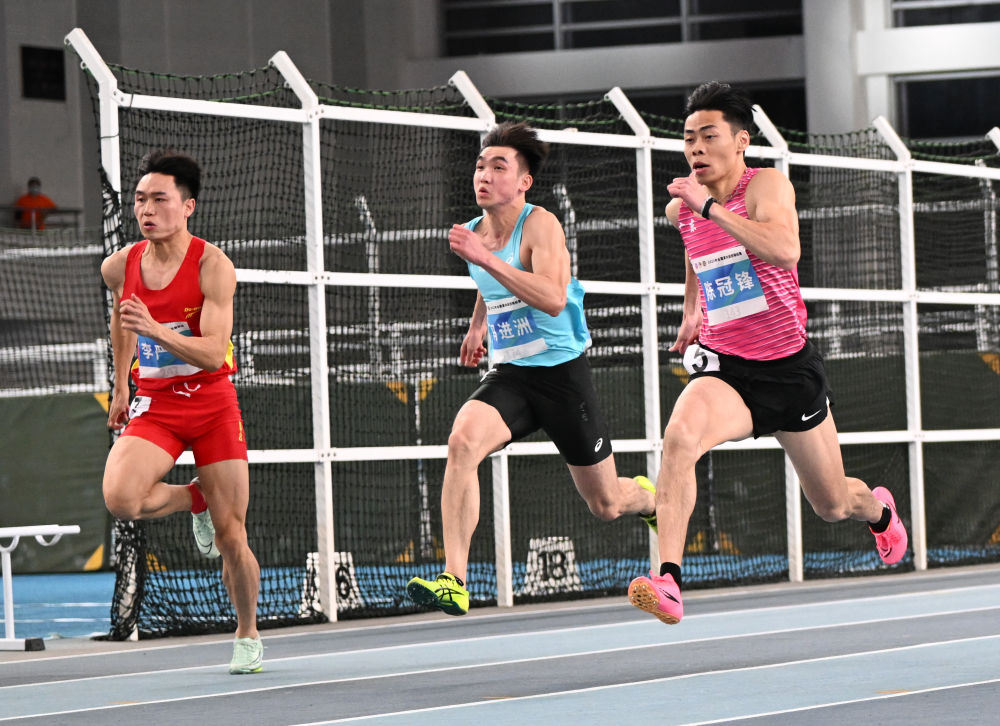 陈冠锋和汤星强是男子4X100米接力项目国家队队友,此番在室内60米决赛同场较量,广东队陈冠锋起跑出色、冲刺有力,最终率先冲过终点,以6秒55的个人最好成绩夺冠。福建队汤星强状态欠佳,成绩为6秒70,名列第五。